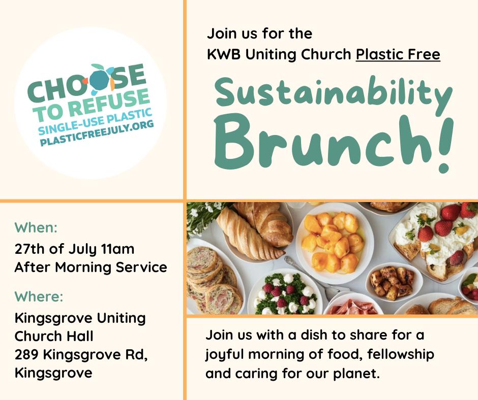 Last Sunday our congregation celebrated Plastic-Free July with a Sustainability Sunday Brunch! We enjoyed a talk from a director of the Climate Action firm ‘Multicultural Leadership Initiative’, Losena, who shared simple and practical ways we can each make a difference in our lives to do our part to take care of God’s earth. It was inspiring to be reminded about small actions that can have a big impact when we work together.